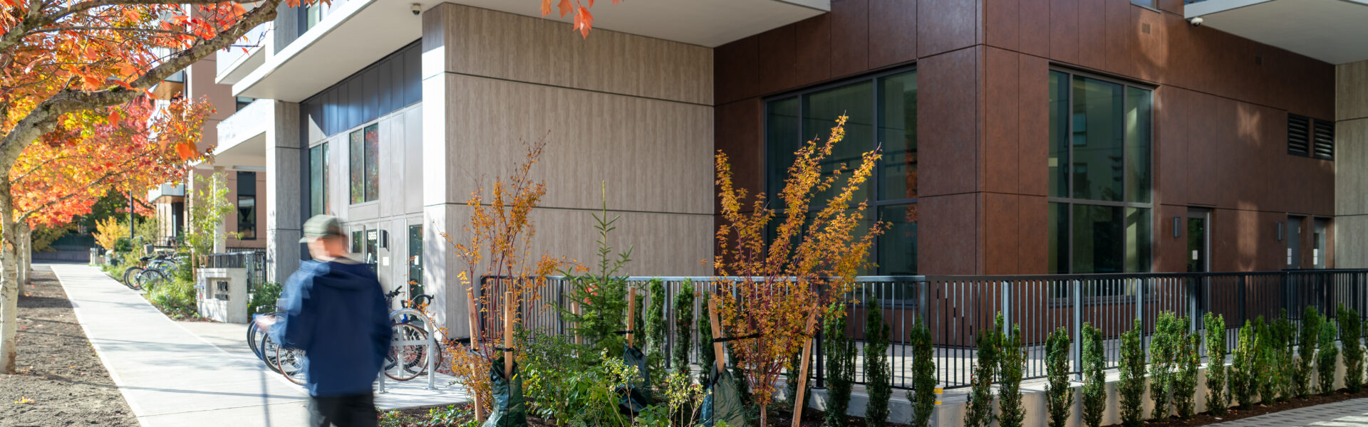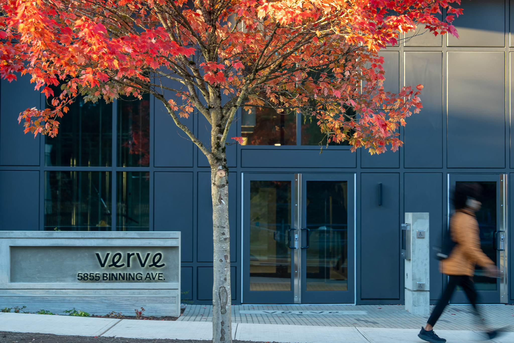 Verve is an 18-storey rental tower located in the south Wesbrook Place neighbourhood at UBC Point Grey with a varied mix of studio to 3-bedroom air-conditioned homes. It offers gorgeous views of the forest, ocean, and mountains, and the shops, services, and restaurants of Wesbrook Village are a short 10-minute walk away. Pacific Spirit Regional Park is just down the street, and neighbourhood greenways make it a breeze to get where you need to go by walking or cycling.